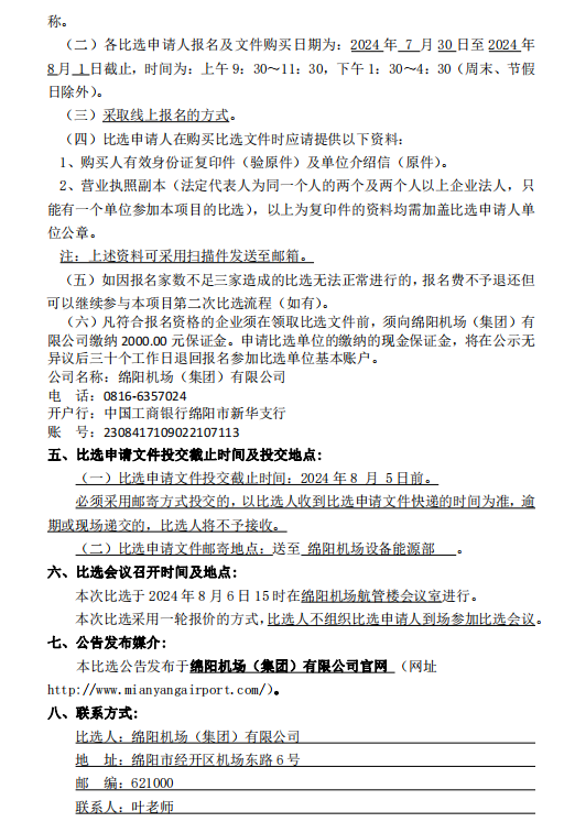 綿陽機場消防滅火防火服裝采購項目比選公告(第二次)